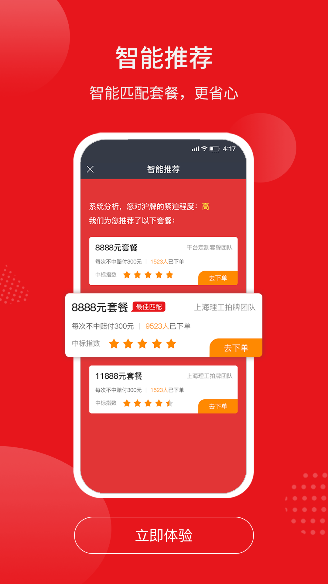 人人代拍ios版是由官网最新推出的一款车牌代拍平台,专为广大车主用户精心打造,内置套餐下单、发布需求、新人注册、拍手申请四大特色板块,界面清晰简洁,方便用户根据自己的需求指定想要代拍的车牌,自主选择心仪的代拍团队和产品套餐,而平台采用的实名认证以及担保交易制度,去除中间商赚差价,所有信息公开透明、真实可靠,让车牌代拍更加安全放心,也让广大车主用户更加省心、舒心~