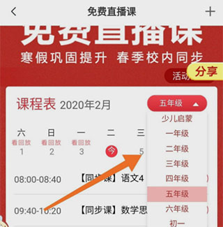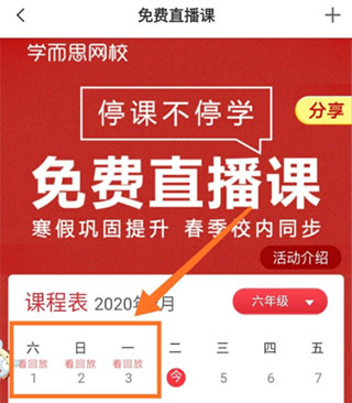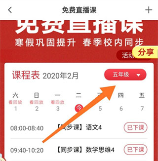 4、我们选择完年级之后,然后在课程表上方选择合适的日期。