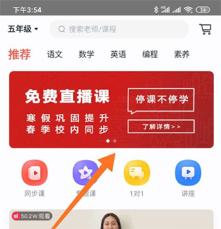 1、打开软件,登录账号之后,我们点击推荐页面下的免费直播课。