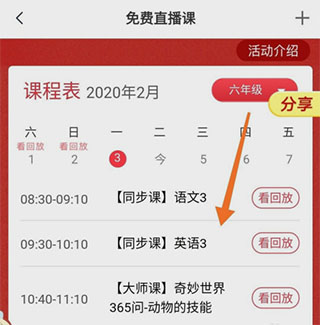 5、日期选择完毕之后,我们然后根据实际情况选择下方的课程,点击回放。