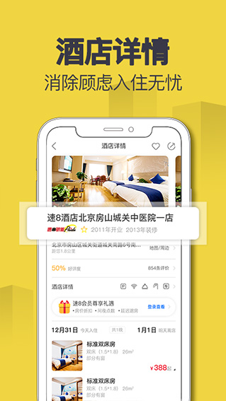 出差旅行在外,最担心的莫过于住宿问题了,所以今天小编为大家推荐推荐一款非常不错的软件,它就是速8酒店ios版啦,一款便捷实用的在线酒店预订软件,该软件深入挖掘时下广大用户的出行住宿需求,利用其海量优质的客房资源、专业的服务团队等优势,为用户提供酒店预订、房间选购、在线支付等实用功能,可让用户根据自身习惯和喜好,自由在线选择想要入住的客房并下单,非常简单方便!速8酒店更有机票/火车票、租车、附近旅游景点和位置服务等特色功能,能够全方位满足用户的个性化出行、住宿需求,为用户带来最舒适便捷的出行入住体验~现在下载注册还能享受更多精彩优惠哦,赶快来试试吧。