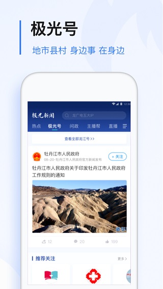 黑龙江极光新闻ios版是黑龙江广播电视台倾力打造的智媒体新闻客户端,它的内容特点就是最快速、最权威、最智慧、最真实、最广阔,能够快速的了解到实时的资讯,拿到第一手消息,聊天的时候都能够掌握主动权。该软件可以一键订阅全网信息,一键关注各路大神,能够清楚的知道国事家事天下事,是你知晓别处发生的事的第一选择。极光新闻还支持线上缴费,可以让你足不出户就能交到水费、电费、话费等等诸多费用。 另外,软件还有大v帮忙指点迷津,你不懂的事情都可以咨询大v来解决。这么一个最快速新闻发布平台、最权威政策解读平台、最智慧网上办事平台、最真实民意反馈平台、最广阔的新闻覆盖平台,难道还不值得你信任吗,赶紧下载使用吧。