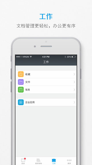 – 支持微信企业号会话服务,与微信消息打通,自由选择工作生活是否分开