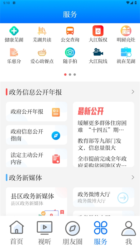 5、政务:发布芜湖市政府以及各县区的政务信息和公告