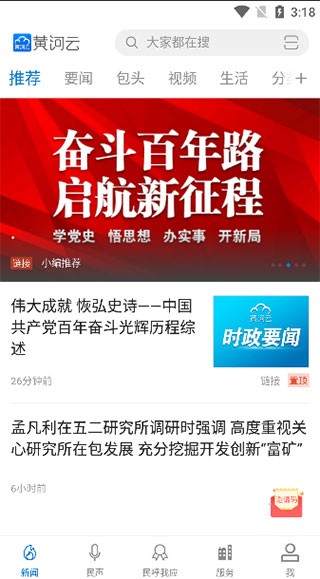 1、在本站下载打开黄河云app,可以看到这里有很多新闻推荐;