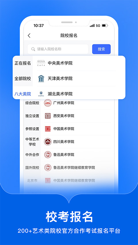 1、院校智慧主页:全国各大艺术院校在APP上有对应的微主页,用于发布院校资讯。