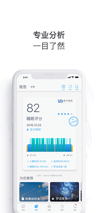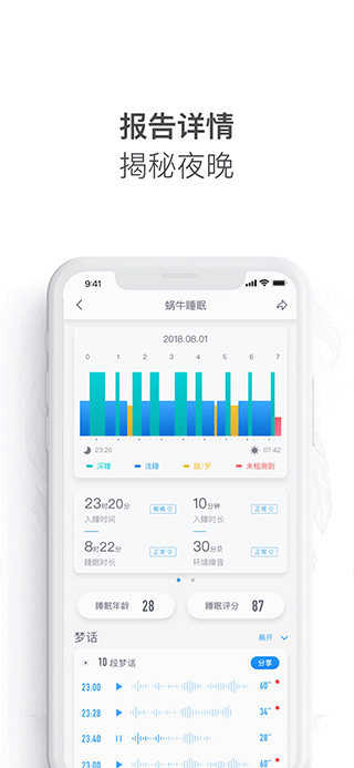 蜗牛睡眠苹果版是一款辅助睡眠的神器,用户可以利用该app记录自己在睡眠的时候说的梦话和打呼噜。软件内含大量助眠音乐,这些催眠曲可以帮助用户更加容易进入睡眠状态。如果用户失眠了,还会对用户的失眠进行记录和分析,快速找到问题出在哪里,到底是什么原因让用户失眠。软件适用于所有人群,即使没有失眠的人,也可以用该app进行心情舒缓,让自己的身心达到放松的状态,这样生活也能更加健康。有需要的用户可以免费下载体验!