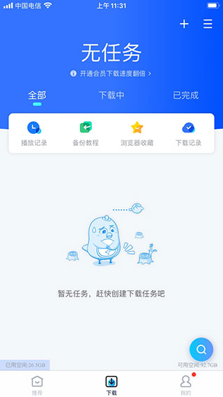 安装完成后打开迅雷 App,进入首页【本地下载】,点击【创建下载】按钮,输入资源下载地址后即可创建下载任务;