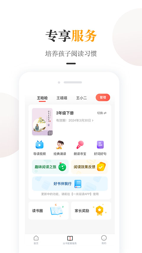 3、读书圈:分享孩子读书收获与心得,展示孩子的读书成长日记。