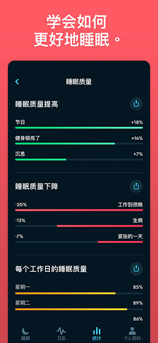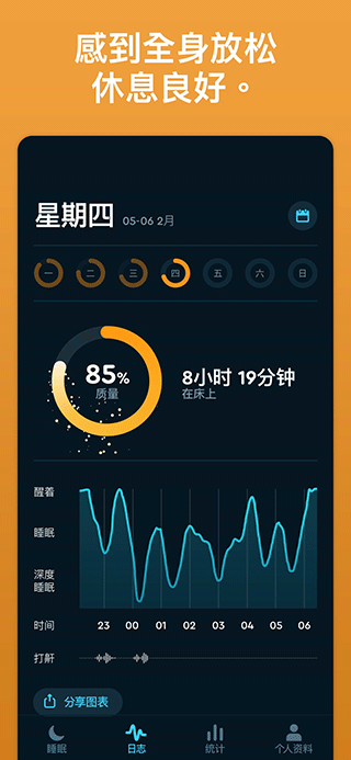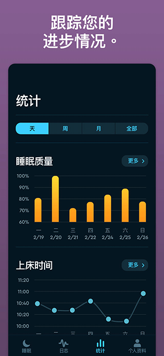 1、详细的睡眠统计数据和每晚的睡眠图。