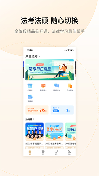 众合在线苹果版是一款由北京方圆众合教育科技有限公司开发的司法考试学习app,用户可以在线学习法学知识,包含了民法、刑法、民诉法等众多法学知识,拥有名师一对一视频教学模式,面对面为你指点迷津,海量学习课程包、精品图书、真题精讲助你顺利通过考试。目前软件拥有司法考试培训顶级师资,权威的司法考试教材和完善的司考专业服务,还可以根据司考大纲量身定制司法考试复习计划加上专业充实的课程,可以帮助用户更好的通过考试。