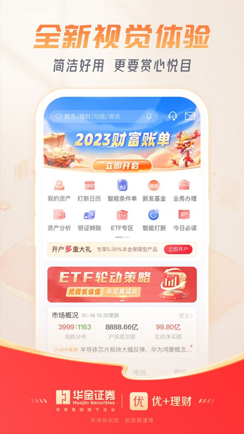 优+理财ios版是一款由华金证券全新推出的互联网证券投资软件,集证券开户、行情浏览、快速交易、全景资讯、业务线上办理等功能为一体综合性服务平台,支持用户在线开户,只需简单三步,即可快速开户进行投资。平台上还支持查看各类金融产品的市场行情,最新最全的新闻资讯都在这里,让你不会错过每一个赚钱的投资机会,投资爱好者赶紧体验吧。