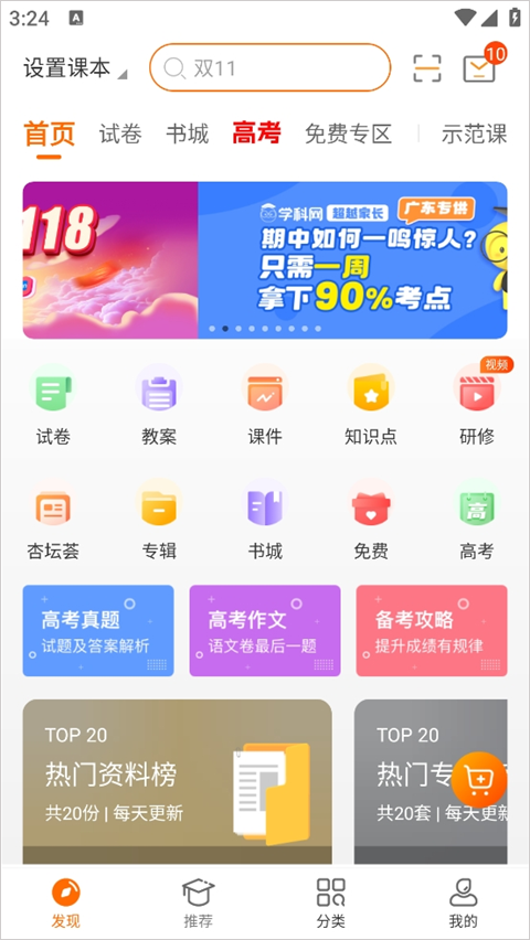 1、 全新定制功能:用户可以设置学科、版本、年级,设置完毕后,系统智能地为你呈现本学科的资料和资讯;