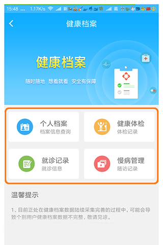 【档案查询】 个人健康档案,随时掌握自己的健康状态。