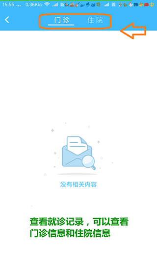 7、查看就诊记录,可以查看门诊信息和住院信息
