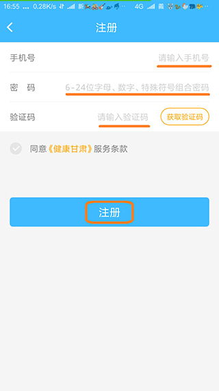 2、输入手机号码,设置密码,输入手机验证码进行注册。