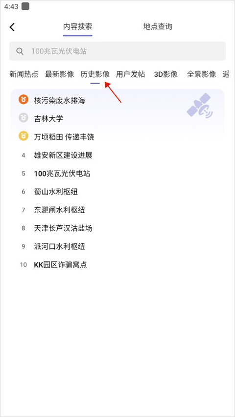 2、选择历史影像,找到想要看的点击进入。