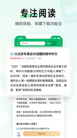 百度文库苹果手机版是针对ios平台而开发的一款移动客户端,继承了电脑版的特色,拥有超过超过了8000万在线文档,支持TXT/DOC/PPT/PDF/XLS/PPT等多文件格式与导入方式,基本上所有的文档都可以无缝搜索、免费下载和阅读,是全世界目前最大的中文文档库。软件内涵盖的内容非常的丰富,包含了各行各业专业资料、模版、范例、经验、数据、信息、笔记等等,可以满足用户的所有需求。同时,百度文库支持与百度APP、手机浏览器、iPad、网页等多端同步收藏下载,用户可以随时随地自己写质量整理。软件需要运行在iOS 10.0或更高版本,并针对iPhone手机进行了优化,可以带给用户非常流畅的阅读体验。