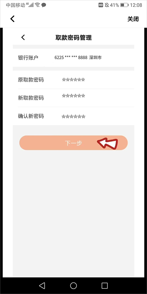 3、接着在打开的取款密码管理页面中点击【取款密码修改】右侧的箭头图标