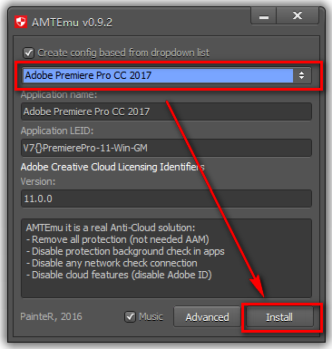 6、第一个选项卡选择Adobe Premiere Pro CC 2017,点击“Install”