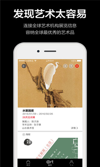 艺厘米ios版是一款专为苹果用户打造的艺术品资讯阅读应用,平台签约超500家全球杰出艺术机构,云集超100家艺术原创品牌,拥有超100名专业自由撰稿人,涵盖水墨、油画、雕塑、版画、绘画、综合材料、影像、装置、摄影、书法篆刻、古迹文献等海量精选艺术作品。让你随时随地掌握各种前沿展览阅读,实时了解周边是的艺术展览信息以及收藏作品信息。同时在艺厘米iPhone版你还可以结识一群志趣相投的小伙伴,与他们分享自己的收藏心得,喜欢艺术的亲们一定要下载体验哦!