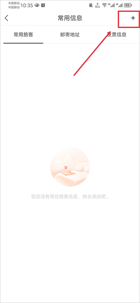 3、进入后在常用旅客中点击右上角+号