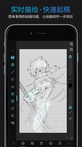 通过触屏操作调整人偶,配合资源库快速布景与制定动作,简单高效完成漫画起稿、动画分镜、电影构图等工作。