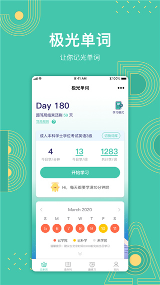 极光单词苹果版是由北京思享聚合科技有限公司自主研发的一款线上英语学习软件,创新推出学习笃局模式,对“赌”背单词,背完就返现,专治背单词重复拖延、中途放弃、记不牢等问题。同时该软件采用了多种高效记忆法帮你记忆单词,比如以电影结合的形式,这样你不仅可以看自己喜欢看的电影,还能够深度的掌握特殊学习方法,可谓是一举两得,除此之外,你还能将你学习到的词汇运用到生活、学习、工作、与朋友、家人聚会等大型聚会中,这样就可以更好的熟悉这些单词。另外,在极光单词中还为大家提供了背单词赚钱的方法来鼓励大家积极背单词,致力让你对学习英语变得更加感兴趣,毕竟单词记忆什么的都是小Case,当你与它熟悉之后,你会发现背单词是如此的简单,还在等什么,需要这款软件的用户快来下载吧!