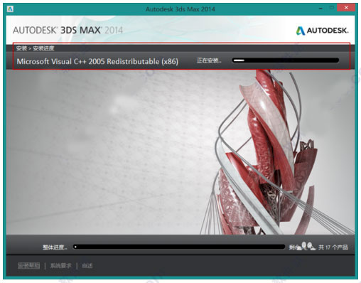 7、3dsmax2014正在安装中,根据用户电脑配置,安装时间不定,小编的电脑30分钟安装好;