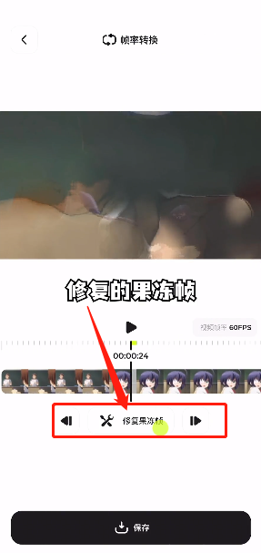 4、转换完成后,进入修复果冻帧界面,我们可按需求修复,修复完成后点击保存即可