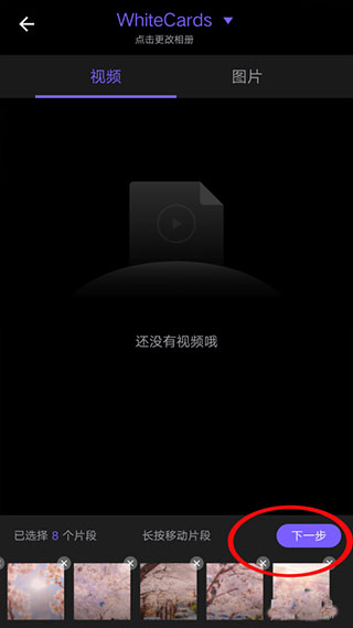 2、选择要剪辑的视频,点击右下角的“下一步”;