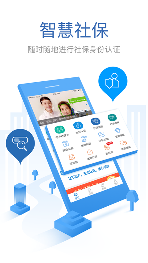 看看生活app苹果版是一款由上海看看智能科技有限公司为苹果手机用户推出的覆盖人群多、地域广、功能性较全的智慧社保认证软件,其是在原看看社保app的功能基础上进行扩展的全新版本。目前其为用户提供一站式服务,其中包含社保认证、认证查询、电子社保卡、智慧出行、免费发布、健康医疗、日常应用等便民功能。社保认证通过证件识别、人脸检测认证等核心识别技术,提供一套智能便捷的社保信息验证流程。该软件采用了智能人脸识别模式 , 具有远程验证、异地验证等优点。更好的为老百姓提供安全、便利、稳定的智慧社保解决方案。同时看看生活app在扩展功能方面支持了可以在手机上进行火车票、飞机票、汽车票、酒店等票务的线上预订,以及提供相关政务服务,能够满足用户们多样的生活服务,有需要的用户可以在本站免费下载使用。
