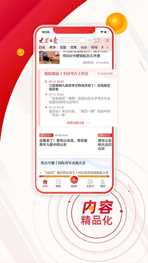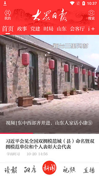 1、打开大众日报苹果版,首页如下图所示,包含了最新的新闻资讯信息;