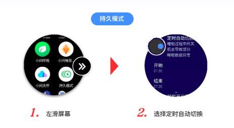 根据设置时间,手表定时进入持久模式,可以使手表续航时间更长久
