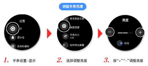 设置路径:设置-显示-调整亮度手表亮度数值选择越低越省电