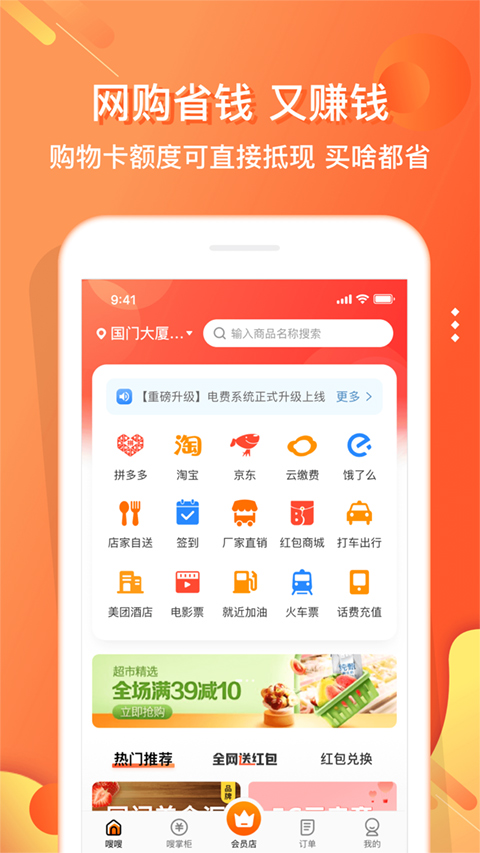 【送红包】集淘宝、京东等电商巨头;充话费、缴电费等生活缴费;外卖订餐、加油打车、住酒店、订火车票、门店消费等生活场景,统统送红包。用户消费即送红包,红包可在APP红包商城中自由兑换商品。