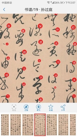 2、查询多个字:透过左右滑动,切换不同单字的列表。