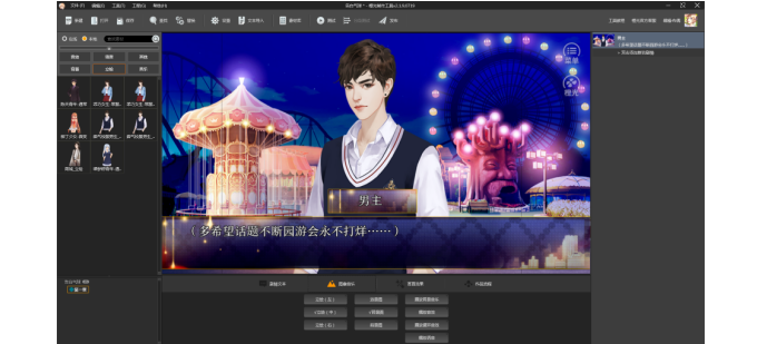 1、一个故事剧情和故事剧情搭配的素材,包括人物立绘、背景图、音乐等。