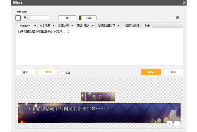 将立绘拖到相应的区域,立绘便自动出现在固定的位置,十分方便、简捷。如下图: