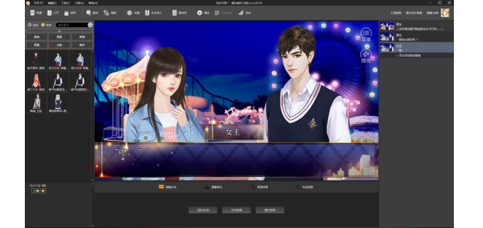 (2)需要的素材:男主和女主的人物立绘;街道和公园的背景图;轻松的背景音乐。