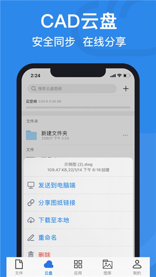 5、与微信紧密集成,可通过微信发送图纸给好友,并可以直接打开微信或邮件、网盘中的DWG文件;