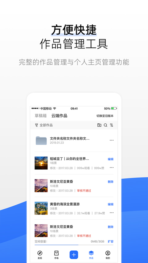 在这里用户可以使用软件对本地拍摄的全景图片和视频进行编辑,而且制作完成的作品不仅可以直接保存至云端,或者导出本地文件夹中,还可以一键分享给朋友,上传至720云全景虚拟现实社区,让其他用户都能欣赏到你的作品。此外新用户使用720云vr全景制作软件电脑版还可以免费享受1G的上传空间,并且支持弹幕和作品管理等,上传速度也是非常的快哦,那么有需要的用户快来下载使用吧!