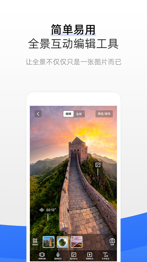 720云苹果版是一款专业的全景图制作软件,该软件界面简洁明晰,功能丰富强大,操作方便快捷,设计得很人性化。同时拥有完整的全局和局部修改工具,其中就包括自定义Logo、上传云端、导出作品、初始视角、热点按纽、全景特效、电子沙盘等。