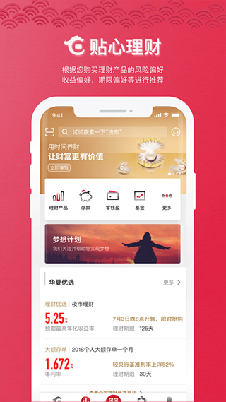 华夏银行手机银行ios版是由“华夏银行”专门为苹果手机用户推出的首款移动金融服务平台,提供了海量金融功能,包括:账户管理、转账汇款、贵金属、基金、三方存管、理财、电子现金、信用卡、预约取现、公司业务等,还全面支持我行信用卡的账单随时查询、账单分期、易达金分期、积分礼品兑换以及使用他行银行卡进行信用卡还款的功能,使您通过手机银行即可轻松享受手机快速转账、ATM预约取款、信用卡还款、积分礼品兑换等便捷性服务。