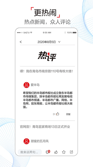 “头条”、“天下”、“深度”频道主打突发事件等重大新闻,让新闻更快速。半岛都市报作为一张已陪你16年的报纸,懂你的人是我是我还是我,在“青岛”、“财经”、“楼市”频道,我们关心青岛的大事小事身边事,无数的半岛小伙伴为你跑腿,跟你谈政策,陪你聊八卦。