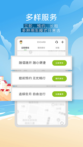 共享汽车evcard苹果版是国内首个电动汽车分时租赁平台,该平台凭借移动互联网+硬件共享,实现一种新型汽车分时租赁服务模式,用户通过手机app就能轻松完成汽车的预约,使用,付费,还车全套租车流程,简单方便,自由高效,为现代都市人们带来一种全新的绿色出行方案。evcard车辆丰富,覆盖范围广,任意网点皆可提车,再也不用为挤公交,车位紧张而烦恼,是您短途出门,工作出差,旅行游玩的一个绝佳出行选择。