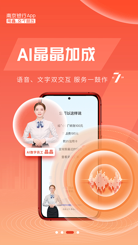 从1.0到6.0,南京银行APP始终坚持“真诚+陪伴”的服务理念,致力于为用户提供专业化、数字化、场景化的综合型金融服务,让银行服务更真挚、更便捷,让南京银行App成为陪伴和见证用户财富成长的首选平台。