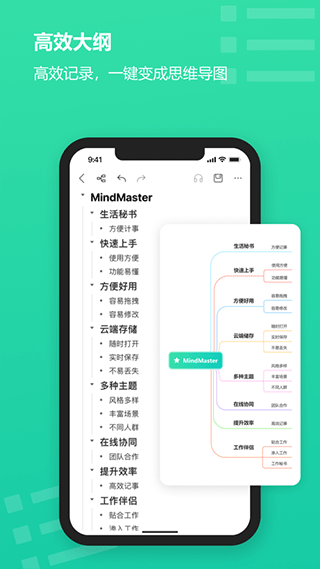 MindMaster ios版是官方针对苹果用户特别研发的一款移动办公软件,它能将纷繁复杂的知识和想法以有序化结构化的方式组织、管理和呈现,帮助您理清思路、捕捉灵感、归纳推演、学习和记忆。同时,软件还支持导出Office/PDF/有道云笔记/印象笔记等常用办公文档和各种图片格式,支持PC/Mac/Linux /Android/iPhone等平台多端同步,无论你身处什么地方只要有网都能够无缝衔接工作计划,适用于阅读、工作、学习、生活等诸多场景,也被中国人寿、上海银行、中国邮政、中国电信、阿里巴巴、北京航空航天大学等来自不同领域的用户所称赞,操作简单,功能强大,是您手机上不可或缺的软件应用。