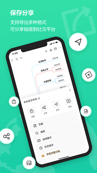支持导出Office/PDF/有道云笔记/印象笔记等常用办公文档和各种图片格式,也可一键分享至微信等社交平台,提高沟通效率!