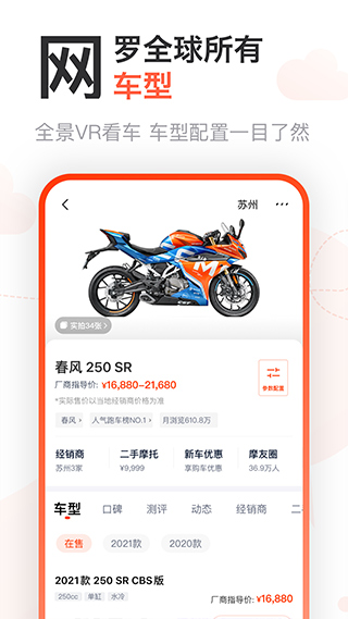 无论上市的,没上市的,国内的,进口的,只有你想不到没有你找不到的车型,10万+张高清实拍图,还有海量的车辆视频,全方位欣赏你喜欢的摩托车。